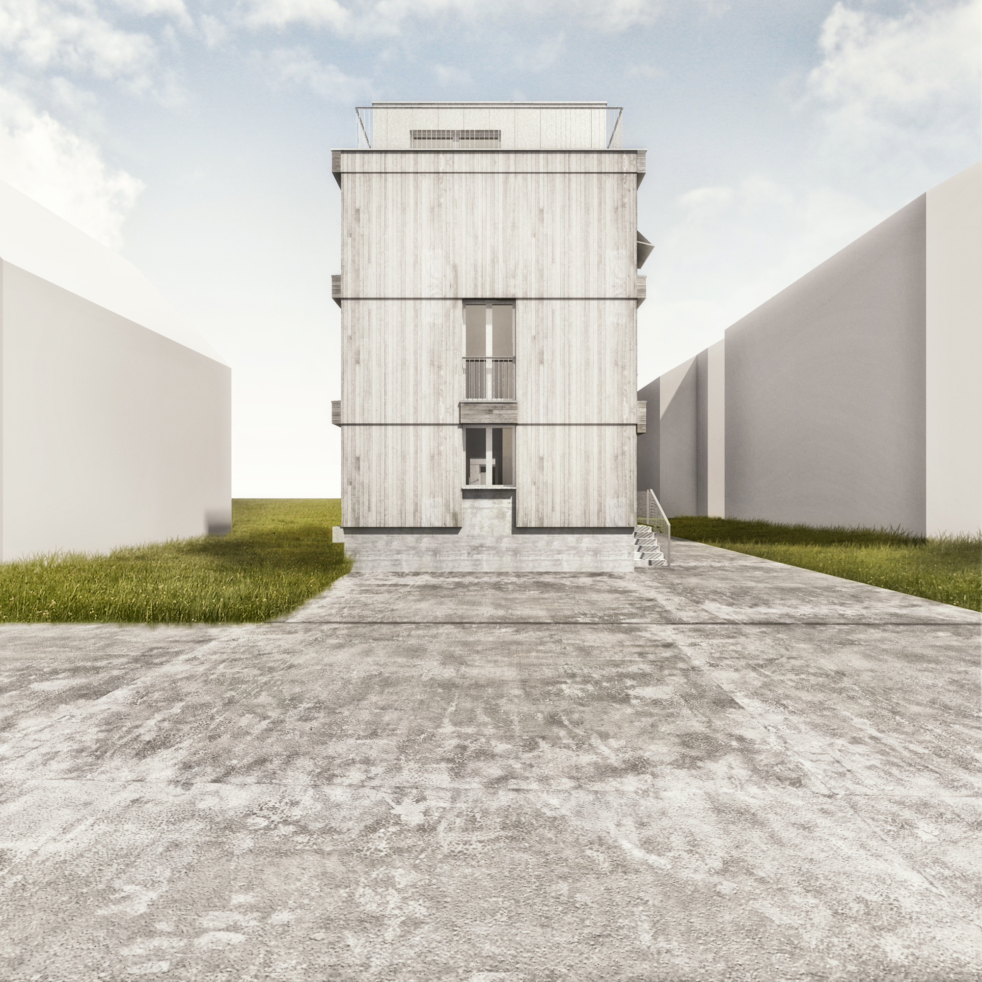 Bauprojekt für den Neubau dreier Wohnhäuser auf einer schmalen und tiefen Parzelle in Allschwil.